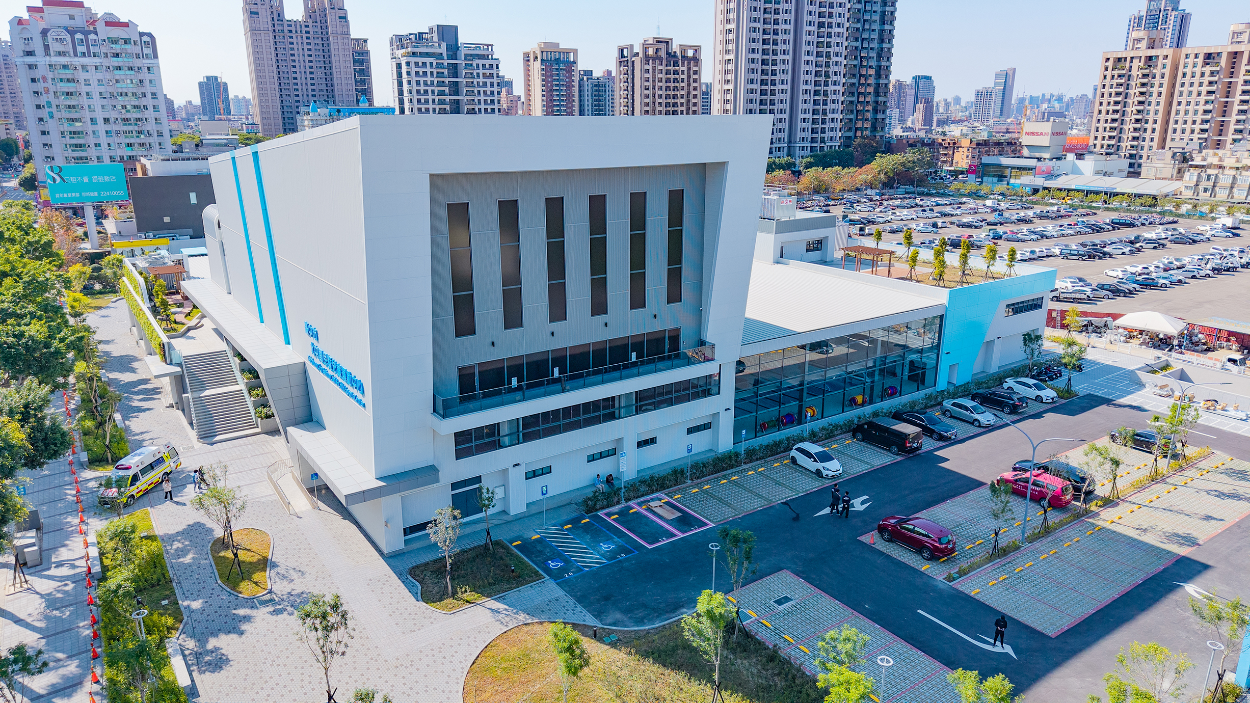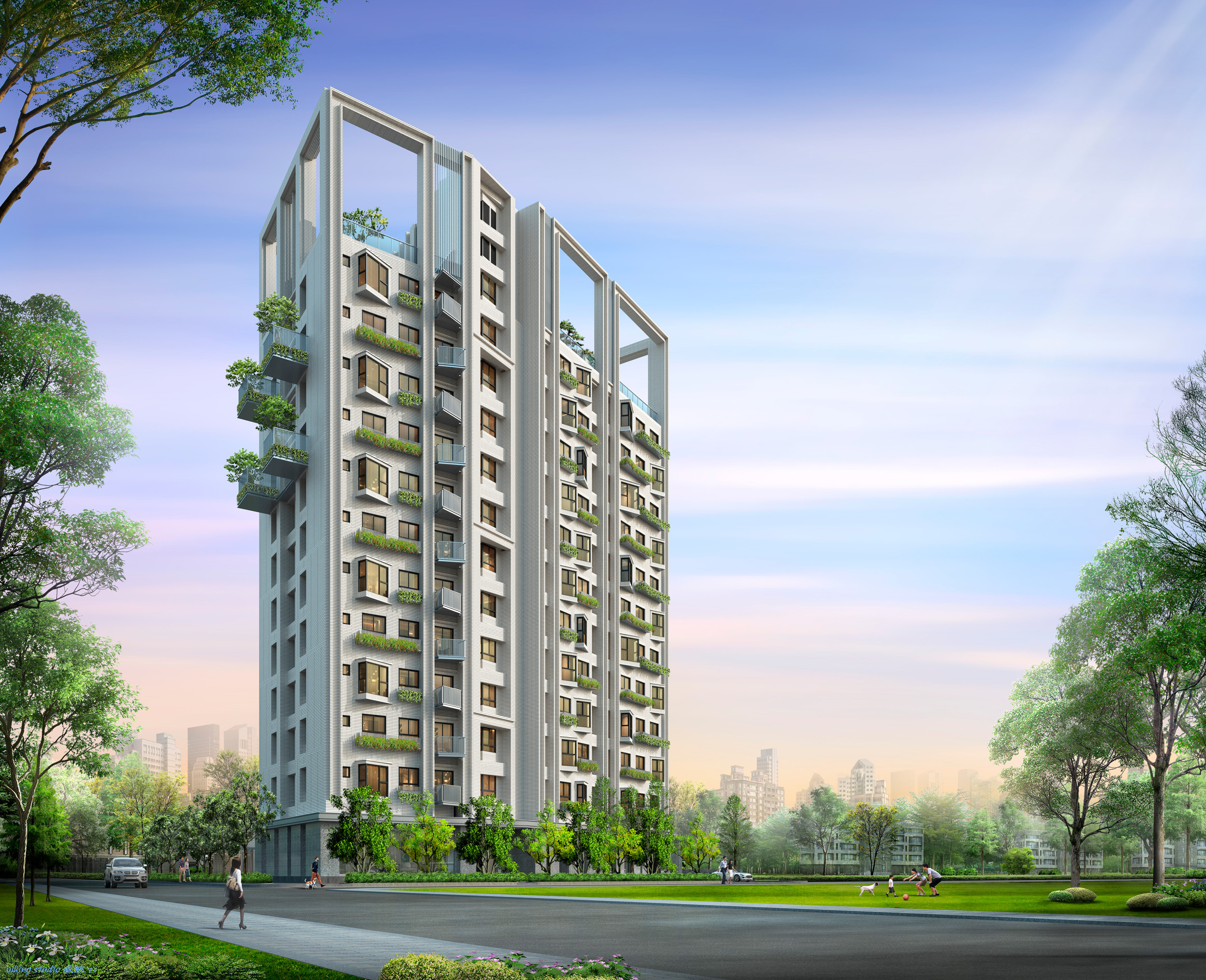 12層建築量體,以俐落線條為框架