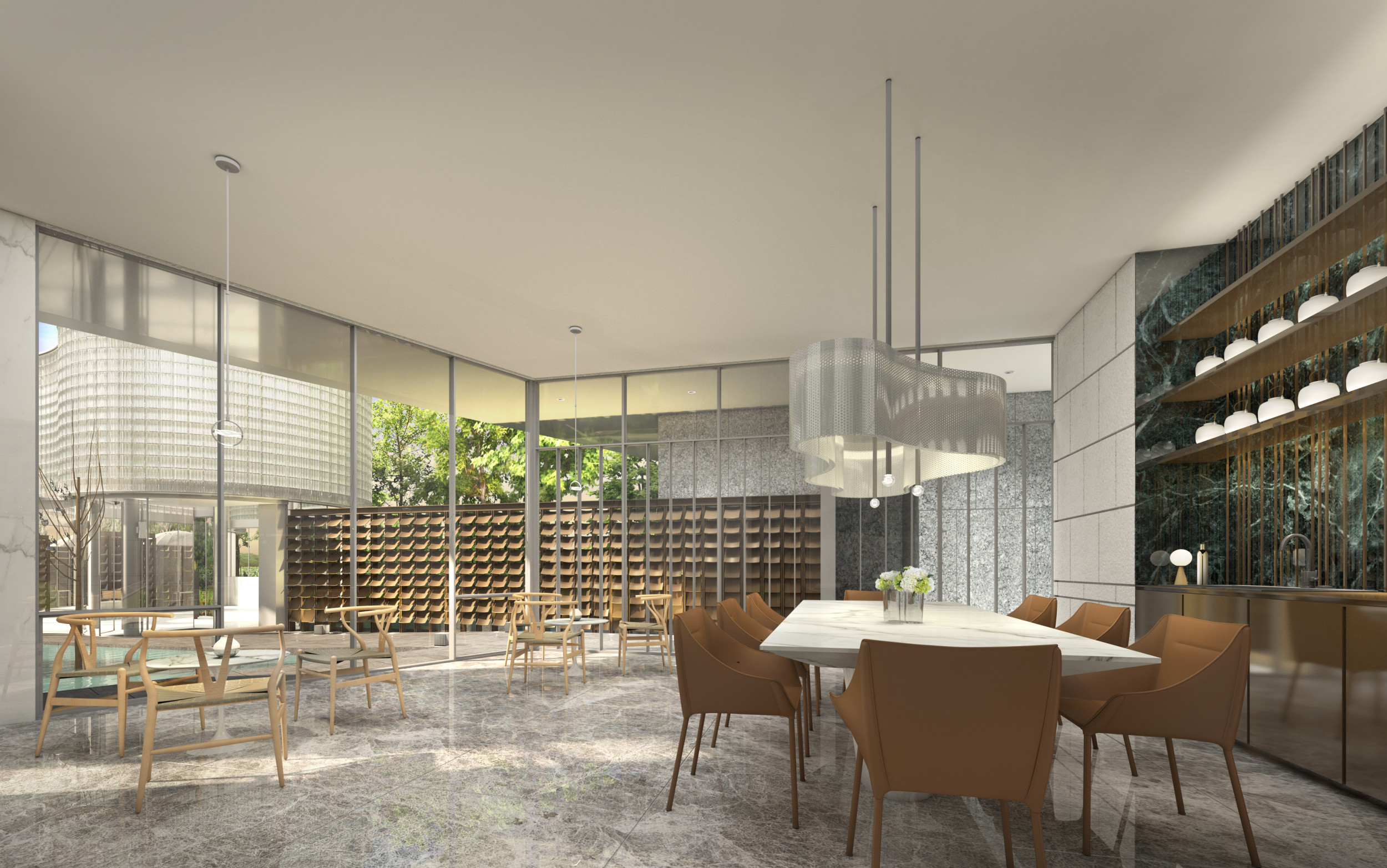 玻璃磚輝映天光,落地窗引景入室
