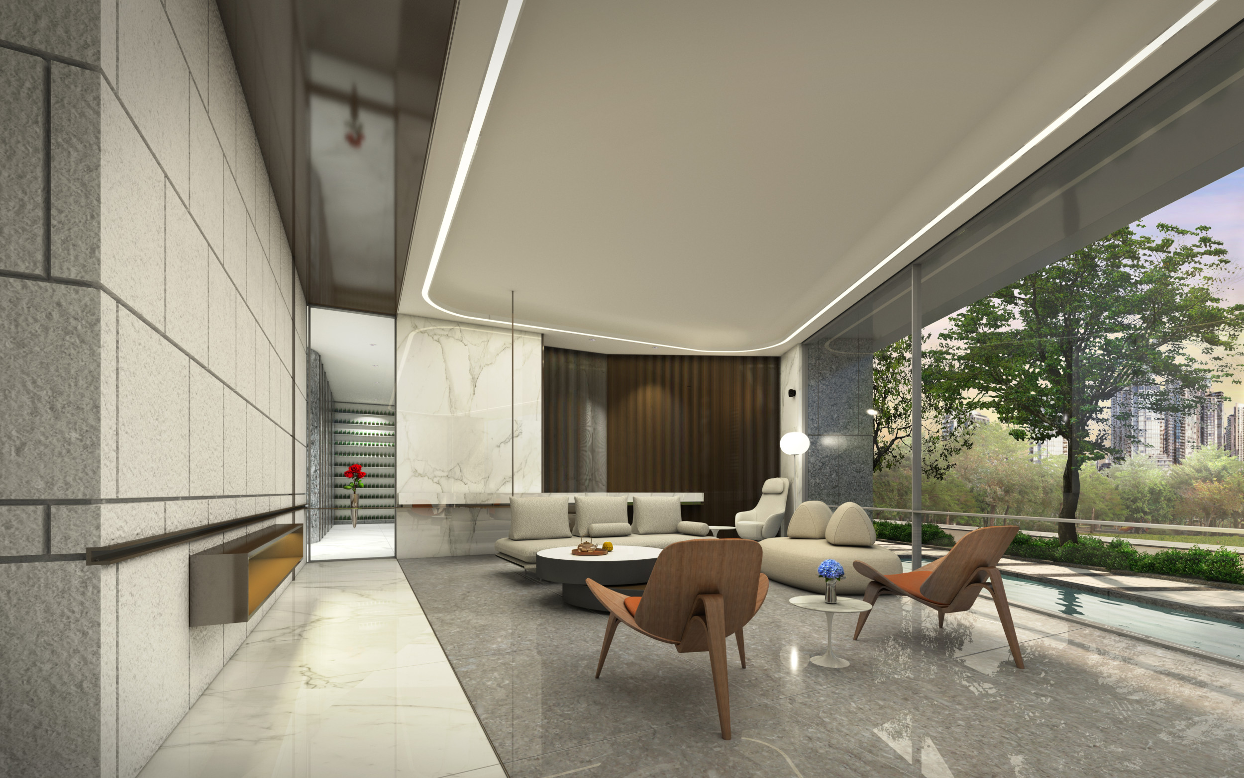 白天,落地大窗迎景入室