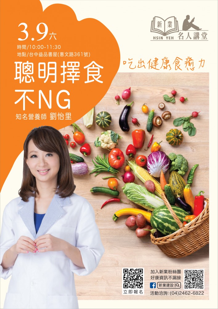 3/9(六)10:00-11:30 劉怡里 聰明擇食講座